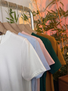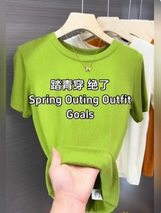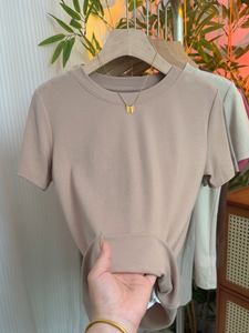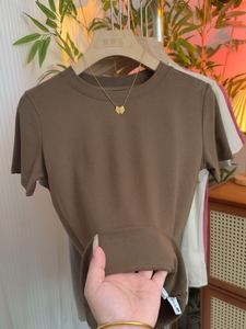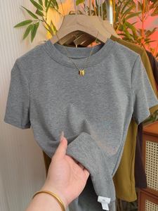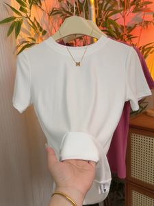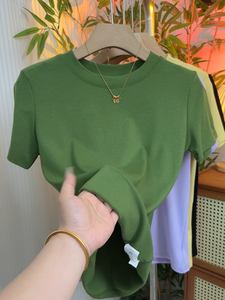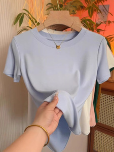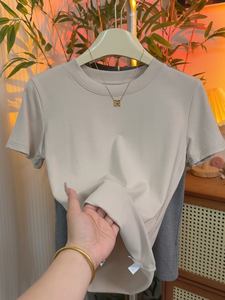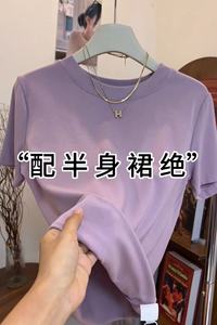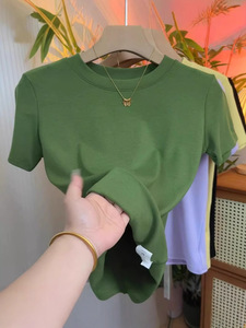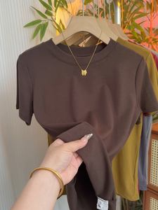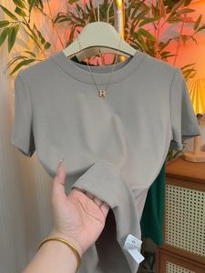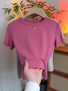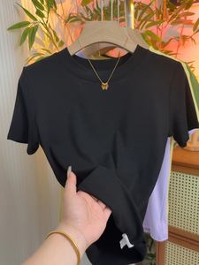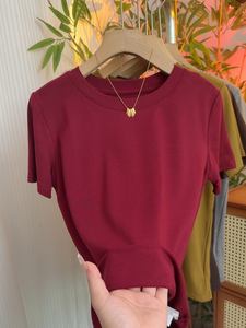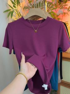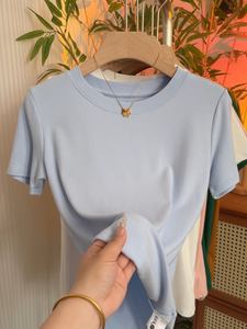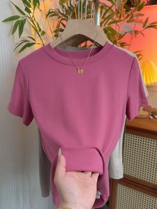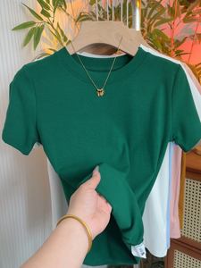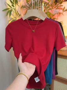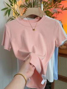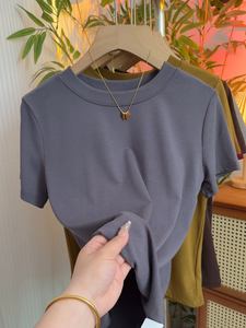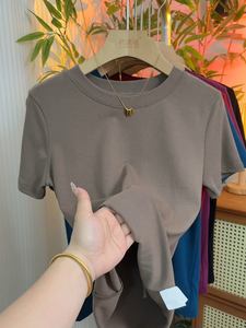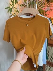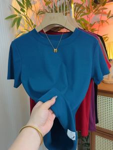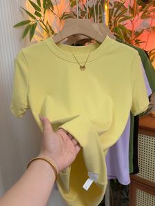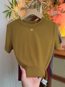 软糯纯色圆领短袖t恤女夏季简约新款百搭显瘦上衣弹力气质打底衫