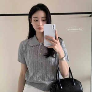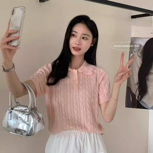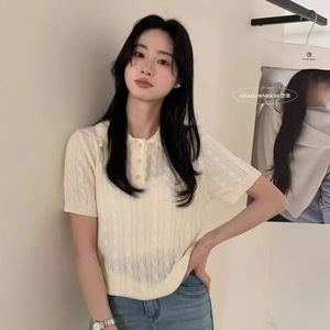 韓国系polo襟デザイン感レースの縁に麻花半袖ニットの古いお金の風が減っています。