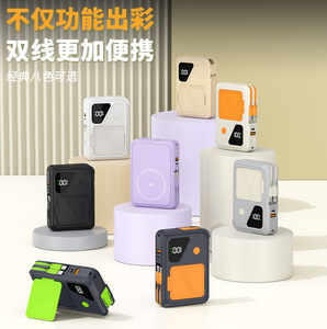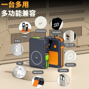 プラグ付き磁気パワーバンク、コード付き壁充電器、22.5W 5-in-1 ワイヤレス高速充電ポータブルモバイル電源 10000