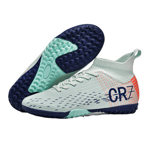 クロスボーダーハイトップサッカーシューズ TF ブロークンスパイク大人の人工芝 AG スパイクレザーフット男性青少年学生スポーツトレーニングシューズ