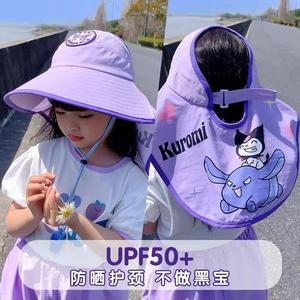 夏の新しい子供用日よけ帽子、大きなつばと首の保護、かわいいサンリオの男の子と女の子の赤ちゃん、ショールとホイッスル付き