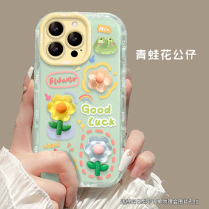 カエルの花の公仔のブレスレットはリンゴの16promaxゼリーの携帯のケースの13の小さい清新な15鏡のスタンドの14を適用します。