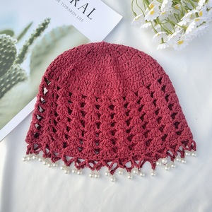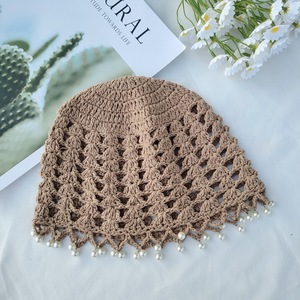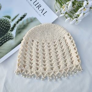 ボヘミアンスタイルのパールペンダント中空つば帽子女性の夏の薄い帽子レトロな顔が見える小さなニットプルオーバー帽子