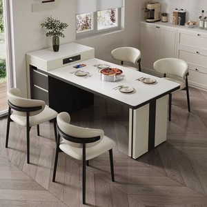 無垢材伸縮アイランドテーブル、スレートティーテーブル、ダイニングテーブル、一体型ダイニングテーブルと椅子、軽くて豪華な組み合わせ、シンプルな家庭用モダンな小さなアパート