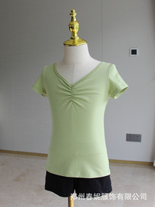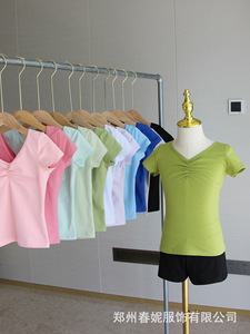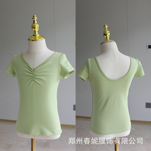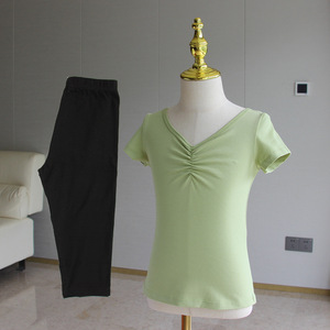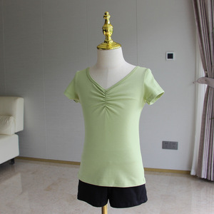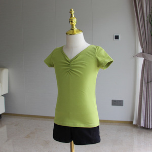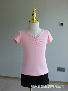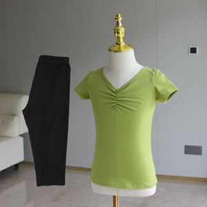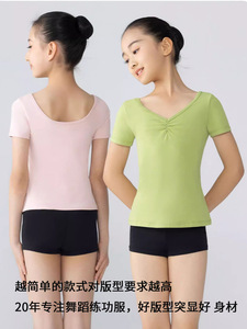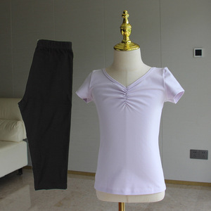 子供ダンス服女の子夏半袖 Tシャツ中国民族舞踊バレエスプリットセットスリム半袖トップ