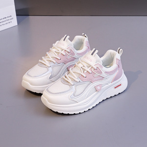 女性用メッシュ通気性スポーツシューズ2025春秋新作中学生ランニング軽量ソフトソール白靴女性用