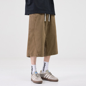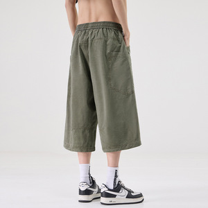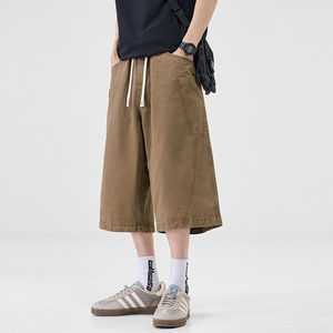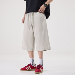 男の子用純綿ショートパンツ、夏用アウターウェア、ストレートワークウェア、クロップドパンツ、メンズトレンディブランド、薄手で快適なゆったりミドルパンツ