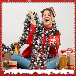 新しいクロスボーダー 2m 暗号化乳白色スノーフレーク毛羽クリスマスシーンアレンジメント装飾カラーストリップラテアートリボン