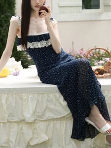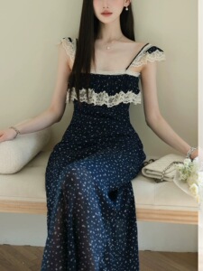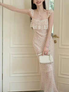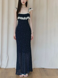 5.19 10AM マンダラ 45 ° バイアスカットレースと花柄サスペンダードレス