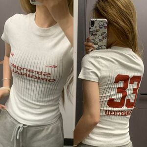 美式字母印花正肩2025夏季新款短款修身新款显瘦辣妹上衣短袖T恤