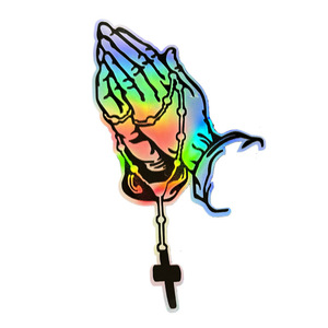 跨境外贸七彩镭射汽车贴纸珍珠念珠祈祷合手车窗玻璃摩托车贴装饰