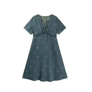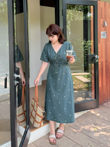 Shuangtian 2025 夏の新韓国スタイル大きいサイズの女性の 100kg ファットミリメートルリボン刺繍ハイウエストドレス 8875