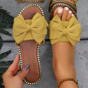 外国貿易の大きいサイズの平底のドリルの蝶結びの1字のスリッパの女性の外は純色の軽い布の冷たいスリッパのアマゾンを着ます。