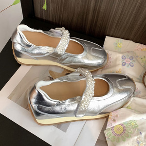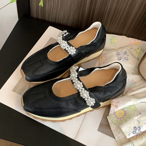 身長が5CMアップ!フレンチスポーツ風浅口バレエシューズ、レディースサマー新作、ワンストラップメリージェーンシューズ
