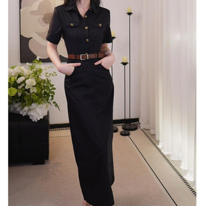 感气质时尚Polo领法式工装收腰显瘦长款连衣裙