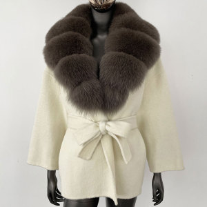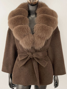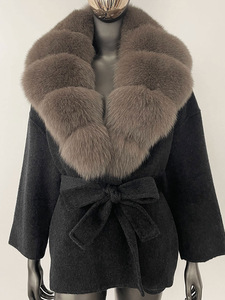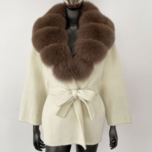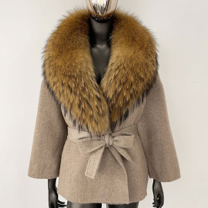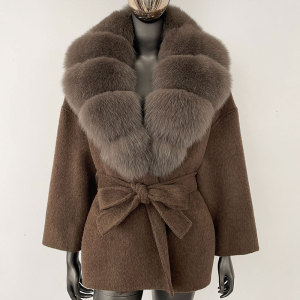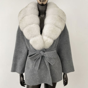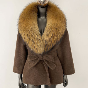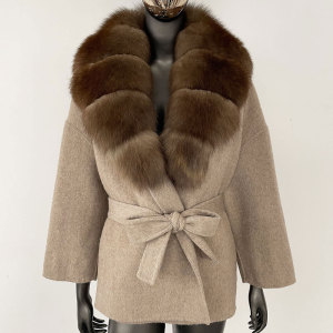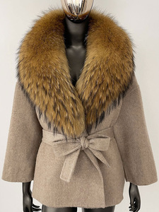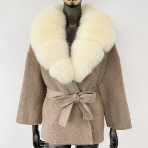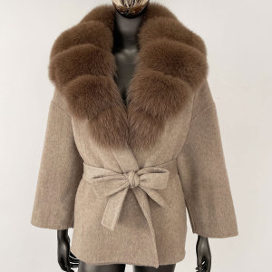 ショートファッショナブルなコート女性のウールコート女性の秋と冬の新しいフォックスファー襟両面ウールコート女性