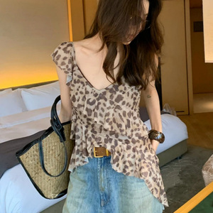 Yufeng ヒョウ柄不規則なネックラインのベストサスペンダーレディース夏の新しいデザインルーズスタイルトップイン