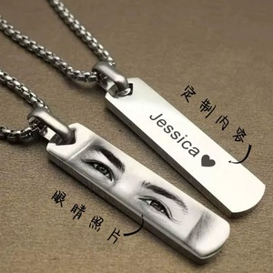クロスボーダーホットセールアイフォトレーザー彫刻チタン鋼ペンダントメンズパーソナライズされたロングストリップカップルネックレス