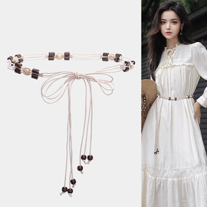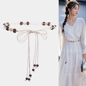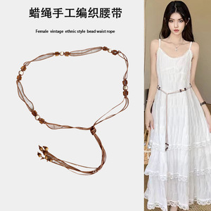 腰绳系带女细腰带装饰连衣裙收腰配裙子波西米亚民族风米白色腰链