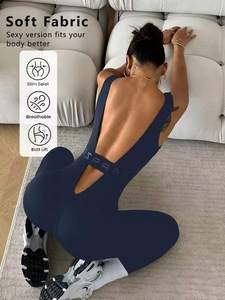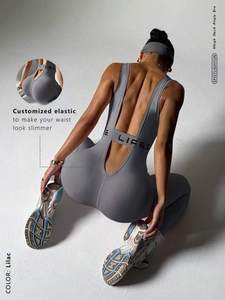 錦糸の5色の欧米はヨガの連体の服のアルファベットの美背のフィットネスの服を縫います。