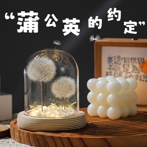 クロスボーダー タンポポ完成品 ナイトライト プリザーブドフラワー ガラスカバー 卓上装飾 ドライフラワー 小物 中秋節ギフト