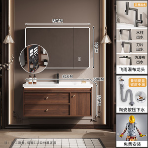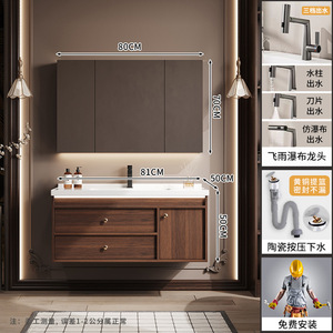 H06-80 ウォールナット色/第二世代スマートミラーキャビネット 防臭跳ね上げ+設置