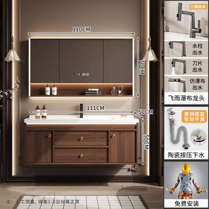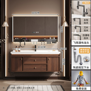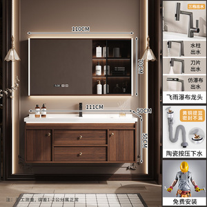 H06-110 ウォールナット色/第二世代ガラス扉スマートミラーキャビネット 防臭バウンス+設置