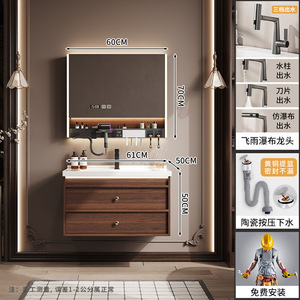 H06-70 ウォールナット色/第二世代ガラス扉スマートミラーキャビネット 防臭跳ね上げ+設置