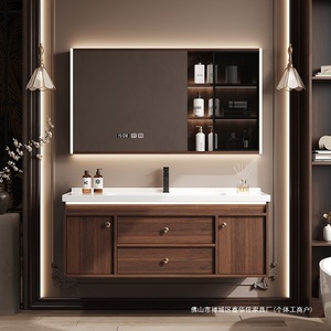 H06-100 ウォールナット色/第二世代ガラス扉スマートミラーキャビネット防臭跳ね上げ+設置