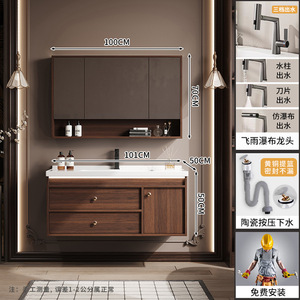 H06-100 ウォールナット色/第二世代スマートミラーキャビネット 防臭跳ね上げ+設置