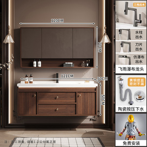 H06-120 ウォールナット色/第二世代スマートミラーキャビネット 防臭跳ね上げ+設置