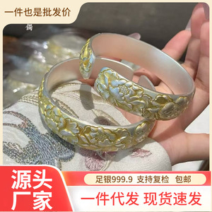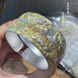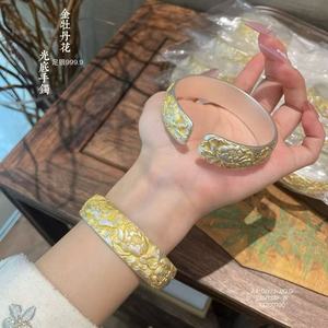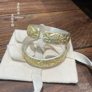 純銀 999.9 ゴールド牡丹フラワーライトベースブレスレットライト高級ニッチハイエンドスターリングシルバー多用途ジュエリーガールフレンドへのギフトとして