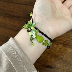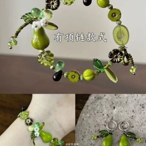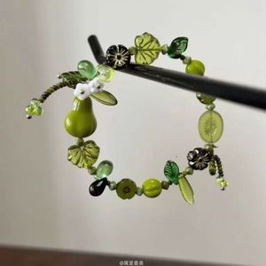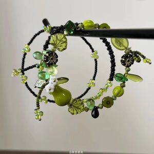 「青梨と春芽」グリーンビーズ自然植物系ブレスレット