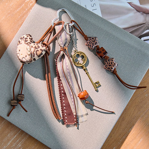 メイラードブラウン編み込みレザーハートmiuシリーズ極度の手作りバッグペンダント登山ロープペンダントキーホルダー