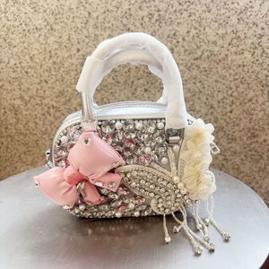 韓国版の小さなレディースバッグ、小さなラウンドケーキ、ダイヤモンドがちりばめられたハンドバッグ、新しいニッチカジュアルで多用途なポータブルショルダークロスボディ携帯電話バッグ