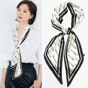 フランス風の長いシルクタオルの薄いシャツの女性の髪は春と秋のベルトを持っています。
