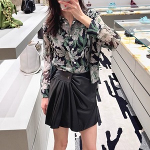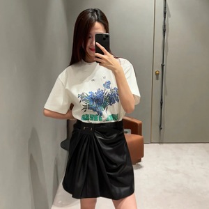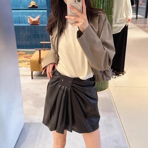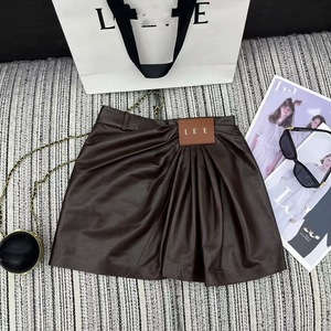 2025 春夏 LOE 新しい楊冪と同じスタイルのウエストエンボスレザーブランド装飾非対称プリーツ気質スカートトレンディ