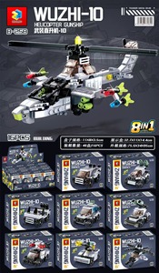 网红爆款特警拼装积木8合1武装直升机儿童玩具男孩军事坦克模型