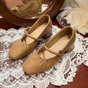 2025年新作夏メリージェーンシューズ、ファッショナブル、レトロ、多用途、太いヒール、浅い口、スクエアトゥ、ソフトソール、ハイヒール、小さなシングルシューズ