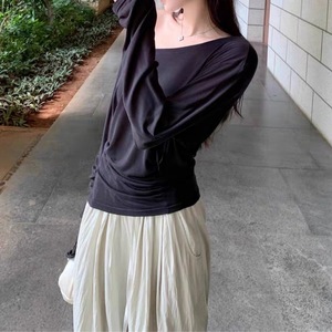 「だるい斜め肩T」はとても綺麗です。100日シルクレース不规则シャーリング长袖tシャツ