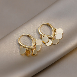 五个圆片爱心耳环女2025年新款潮小众百搭设计感轻奢耳扣耳饰品女