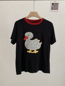 欧瑪莱は色の丸首のレースのアヒルにぶつかって布の半袖の正肩の頭のtシャツの韓系の百合の上着の3486を貼ります。