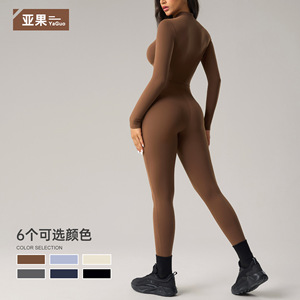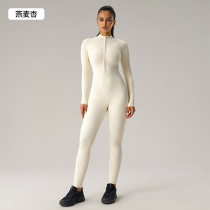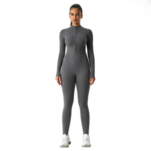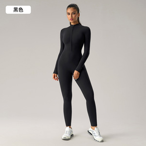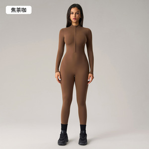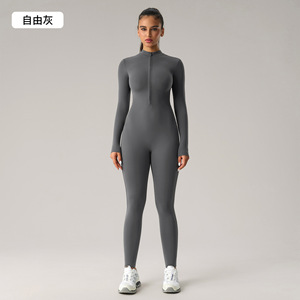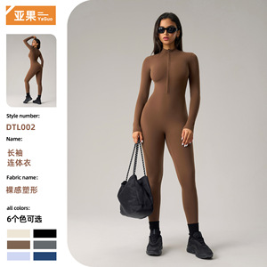 クロスボーダーヨーロッパとアメリカのジッパーヌード長袖ヨガジャンプスーツ高強度フィットネススポーツジャンプスーツ DLT002