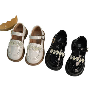 女の子の靴の精巧な真珠の小さい革靴のファッションの明るい顔の王女の靴の2025春秋の女の子は靴を演出します。