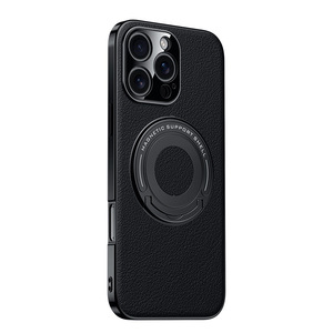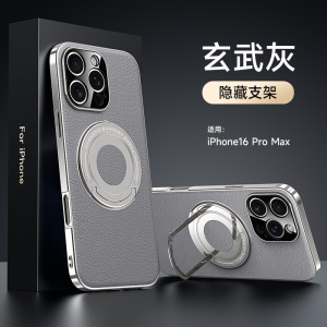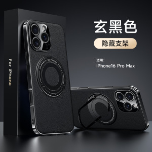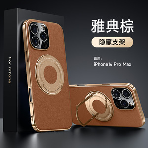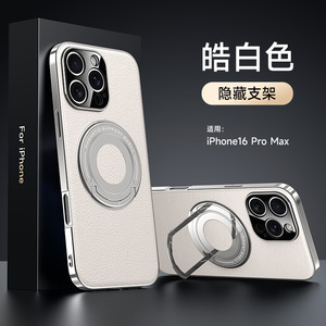 Apple 16PROMAX 携帯電話ケースに適したプレーンレザー磁気トロリースタンド電気メッキ Apple 16/15/14 保護カバー