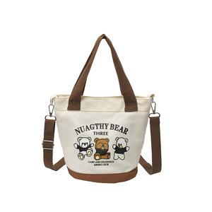 小さなバケツキャンバスバッグ 2025 高価値漫画化粧品バッグランチトートバッグインママショルダーバッグ