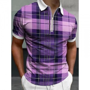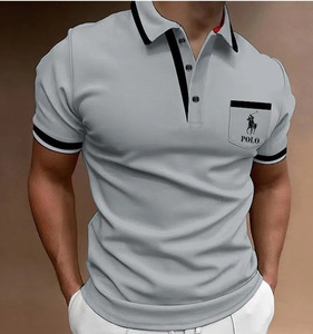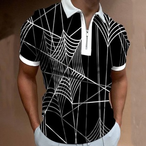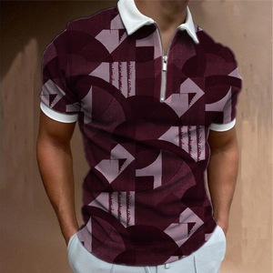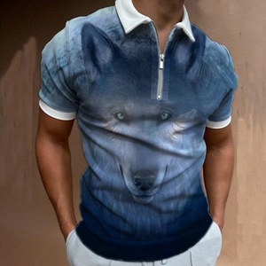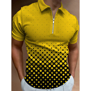 貿易新作メンズカジュアルファッション3Dデジタルプリント半袖ポロシャツストライプ半袖ラペル半袖Tシャツ