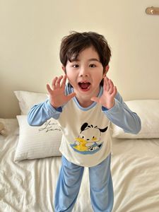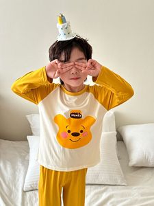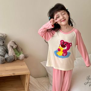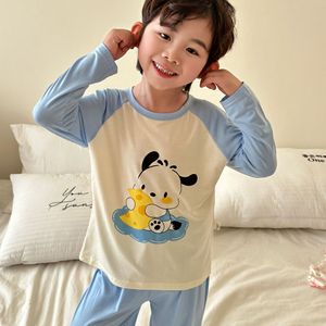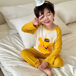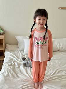 子供用モーダルホーム服セット、男の子と女の子用、夏用薄手パジャマ、中型および大型子供用韓国風長袖空調服