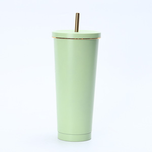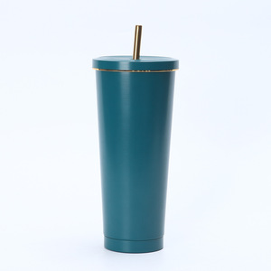 クロスボーダー304ステンレス金辺ストローカップ高颜値真空携帯保温カップ学生カップル随行カップ