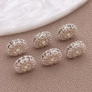 T861-6x8mm铜镀厚银强保色腰鼓珠小蛮腰凤阳花鼓转运珠隔珠-0.78g